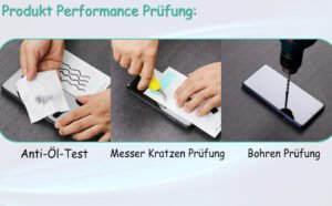Die Schutzfolie besteht aus Hartglas mit einer 9H-Oberflächenhärte, wodurch sie sehr widerstandsfähig gegen Kratzer und Stöße ist. Mit einer Dicke von nur 0,33 mm bleibt das schlanke Design des Smartphones erhalten, ohne die Empfindlichkeit des Touchscreens zu beeinträchtigen.