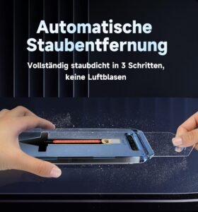 Eines der spannendsten Features dieses Panzerglases ist die **automatische Staubentfernungstechnologie**. Die Schutzfolie wird so konzipiert, dass sich Staub beim Auftragen automatisch entfernt. Das klingt vielversprechend, aber in der Praxis gibt es gemischte Meinungen – dazu später mehr!